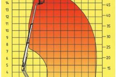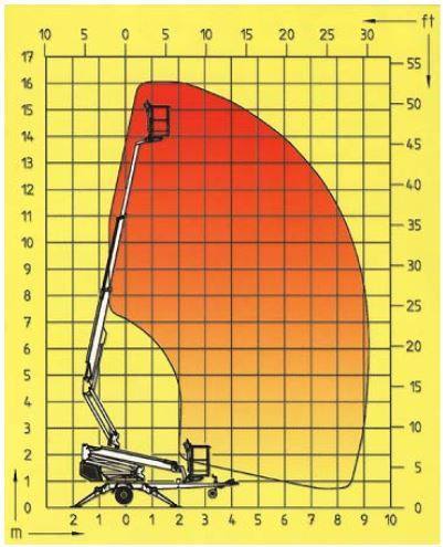 Anhängerarbeitsbühne Dino XT160 mit einem Gewicht von 1950 Kg und einer Korblast von 215 Kg im gesamten Wirkungsbereich!