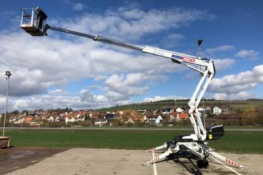 Anhängerarbeitsbühne Dino XT160 mit einem Gewicht von 1950 Kg und einer Korblast von 215 Kg im gesamten Wirkungsbereich!
