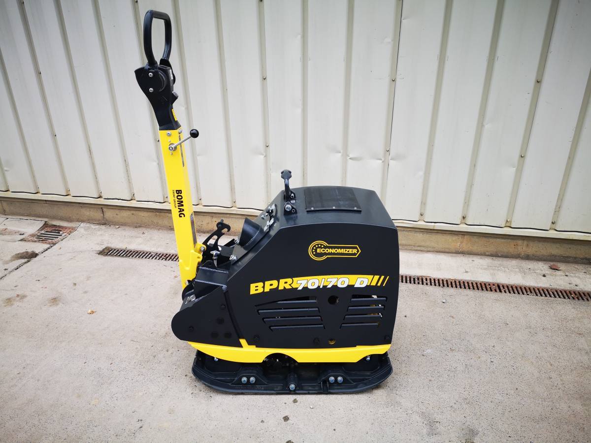 Dank großer Arbeitsbreite und kompromisslos hoher Verdichtungsleistung sorgt dieses Schwergewicht (570Kg) für Superlative im täglichen Baustelleneinsatz. Die 70/70D von Bomag ist bei uns mit einer Verdichtungskontrolle ausgestattet, die den Bediener anzeigt, welche Verdichtungsgrad zur Zeit ereicht ist.